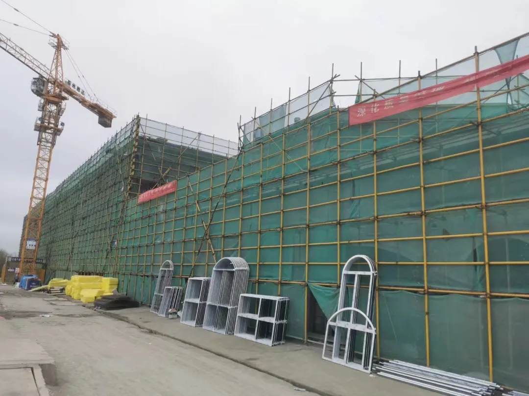环卫基础设施建设工程项目已进入施工冲刺阶段,工人们分散在各个点位紧张有序地开展二次结构完工、综合楼加固改造、再生资源分选车间钢结构安装、消防管道安装等各项作业。