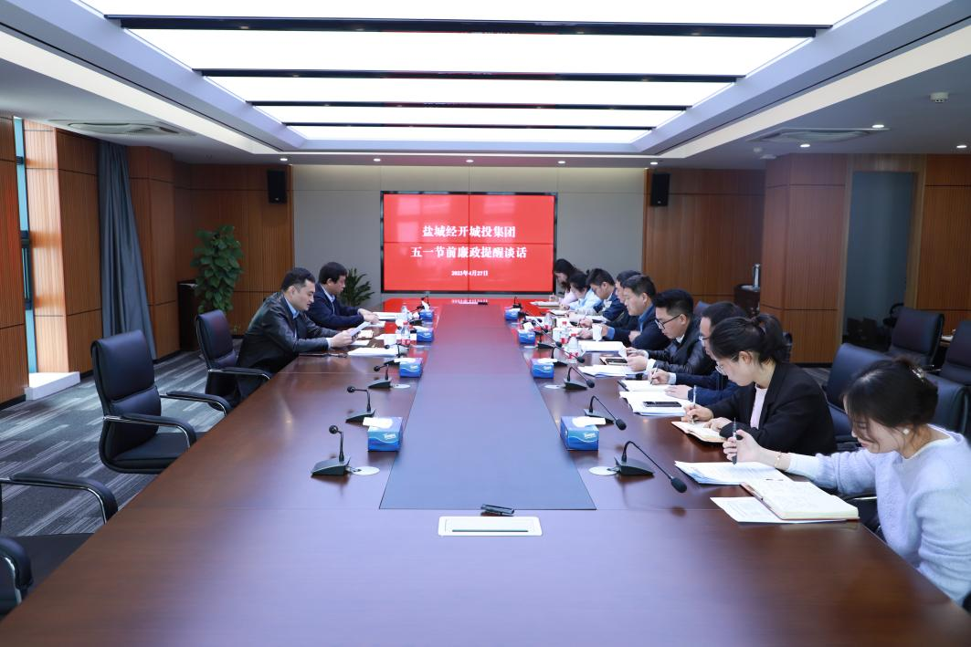 4月27日上午,盐城千亿体育-千亿qianyi(中国)开展2023年“五一”节前廉政提醒谈话,集团董事长王建旭主持会议并讲话。